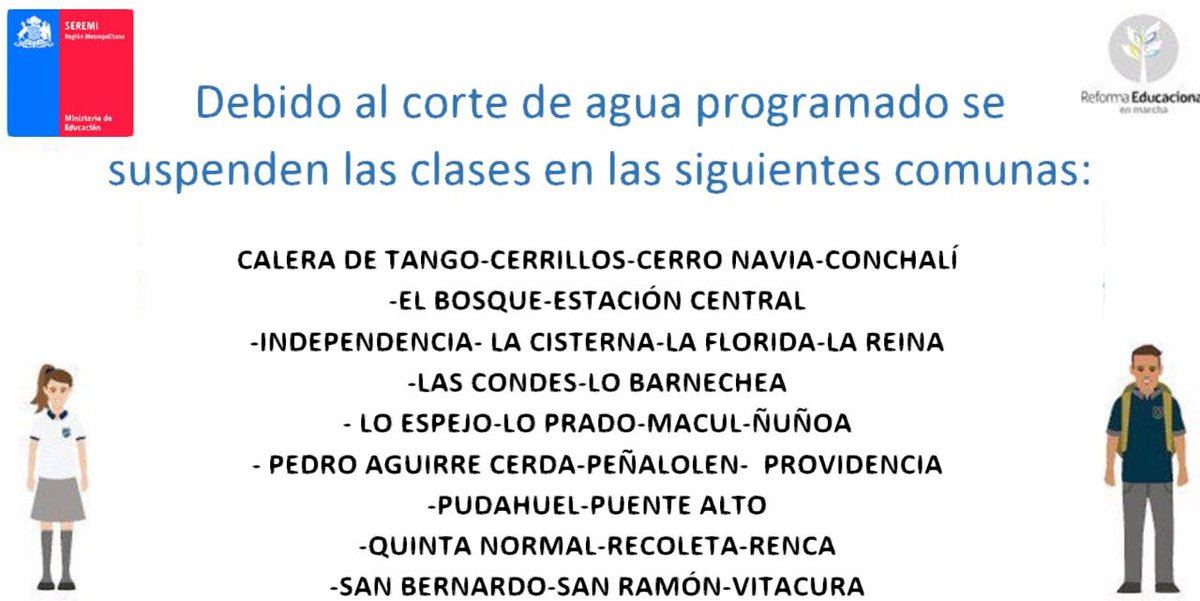 Tal como informó la autoridad sanitaria hace algunos minutos, San Bernardo es una de las 27 comunas que mañana viernes 21 de abril sufrirá corte de agua por 24 horas.